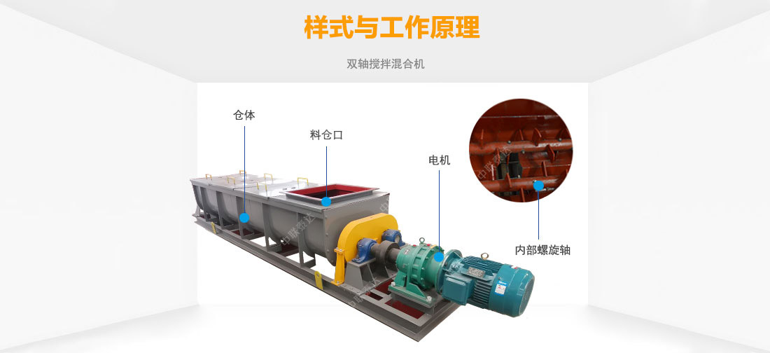 雙軸攪拌混合機機利用兩根呈對稱狀的螺旋軸的同步旋轉,在輸送干灰等粉狀物料的同時加水(或者粘接劑)攪拌,均勻加濕混合干灰粉狀物料。用于增濕作用時,可以達到使加濕物料不冒干灰又不會滲出水滴的工藝目標,從而便于加濕灰裝車運輸或轉入其它輸送設備;用于混合作用時,可以達到粘接劑和干料的均勻混合,還可以多級串聯使用,或和其他混合設備組合應用。 主要適用于火力發電廠、礦山等行業。